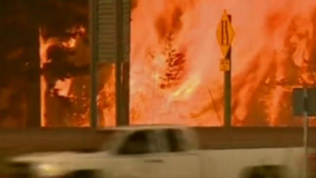 کینیڈا کے شہر فورٹ میک مرے کو خالی کروانے کے واحد زمینی قافلے کو سڑک پر 200 فٹ تک بلند آگ کے شعلوں سے مزاحمت کا سامنا ہے۔
