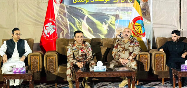 نوکنڈی: آئی جی ایف سی (ساؤتھ) بلوچستان میجر جنرل بلال سرفراز خان نے کہا ہے کہ سرحدی علاقوں میں امن و امان کے قیام اور غیر قانونی سرگرمیوں کے خاتمے کے لیے مقامی آبادی اور علاقائی معتبرین کا تعاون نہایت اہم ہے۔انہوں نے ان خیالات کا اظہار تفتان رائفلز نوکنڈی ہیڈکوارٹر میں منعقدہ عوامی جرگے سے خطاب کرتے ہوئے کیا۔