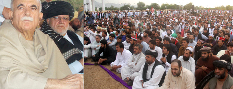 کوئٹہ: پشتونخواملی عوامی پارٹی کے چیئرمین رکن قومی اسمبلی محمود خان اچکزئی نے اسلام آباد کے کنونشن سینٹر کے سبزہ زار پر عظیم الشان جلسہ عام سے خطاب کر تے ہوئے کہا ہے کہ یہ اجتماع پختونوں کا نمائندہ اجتماع ہے پختونوں کیساتھ کوئی ناانصافی برداشت کرنے کو تیار نہیں ہیں ۔