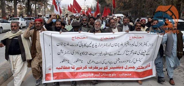 کوئٹہ: بلوچستان لیبر فیڈریشن کے زیر اہتمام محکمہ واسا اور بی ڈی اے کے ملازمین و مزدوروں کی تنخواہوں کی عدم ادائیگی ، مختلف محکموں میں پروموشن و اپ گریڈیشن کے بغیر بھرتیوں کے خلاف و دیگر مطالبات کے حق میں احتجاجی ریلی نکالی گئی۔