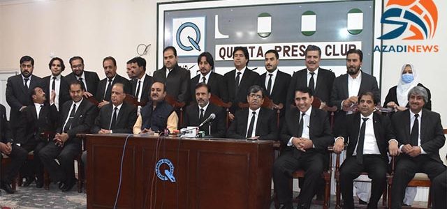 کوئٹہ: ہادی شکیل پینل اور وکلاء پینل نے 28نومبر کو بلوچستان بار کونسل کے انتخابات کے لئے مشترکہ امیدواروں کا اعلان کرتے ہوئے مطالبہ کیا ہے کہ چیف جسٹس پشاور ہائی کورٹ وقار سیٹھ کے انتقال سے متعلق انکوائری کرائی جائے کہ اتنے قلیل عرصے میں مرض کی تشخیص اور اس کا انتقال کیسے ہوا۔ ان خیالات کا اظہار ہادی شکیل پینل اور وکلاء پینل کے رہنماؤں میر عطا اللہ لانگو ایڈووکیٹ۔