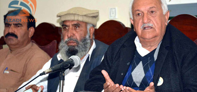 کوئٹہ: چشمہ اچوزئی کوئٹہ کے مقامی قبائل کے معتبرین نے حکومت اور اعلیٰ حکام سے اپیل کی ہے کہ چشمہ اچوزئی میں مقامی قبائل کی جدی پشتی اراضیات پر قبضہ و لینڈ مافیا کے ناجز قبضے اور گزشتہ روز ان پر بلاجواز فائرنگ اور پتھراؤ کرکے درجن بھرافرادکو زخمی کرنے اور گاڑیوں کو نقصان پہنچانے والوں کو گرفتار کیا جائے۔ ان خیالات کا اظہار ملک عنایت کاسی، پروفیسر حنیف، حضر ت افغان، ثناء اللہ، یوسف خان کاکڑ ودیگر نے کوئٹہ پریس کلب میں پریس کانفرنس کرتے ہوئے کیا۔