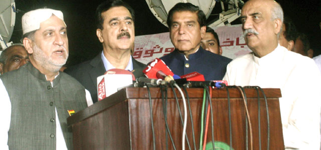 کوئٹہ: بلوچستان نیشنل پارٹی کے سربراہ سردار اختر مینگل سے اسلام آباد کے بلوچستان ہاؤس میں پیپلز پارٹی کے سینئر رہنماء سابق وزراء اعظم یوسف رضا گیلانی، راجہ پرویز اشرف، خورشید شاہ اور شیری رحمان نے ملاقات کی۔