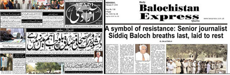 کراچی : بلوچستان کے نامور سینئر صحافی، بزرگ دانشور اور روزنامہ بلوچستان ایکسپریس اور روزنامہ آزادی کوئٹہ کے ایڈیٹر صدیق بلوچ کے انتقال کے تیسرے روز بھی لیاری میں ان کی رہائش گاہ پر تعزیت کیلئے سیاسی و سماجی شخصیات اور مختلف شعبوں سے تعلق رکھنے والے افراد کا تانتا بندھا رہا۔