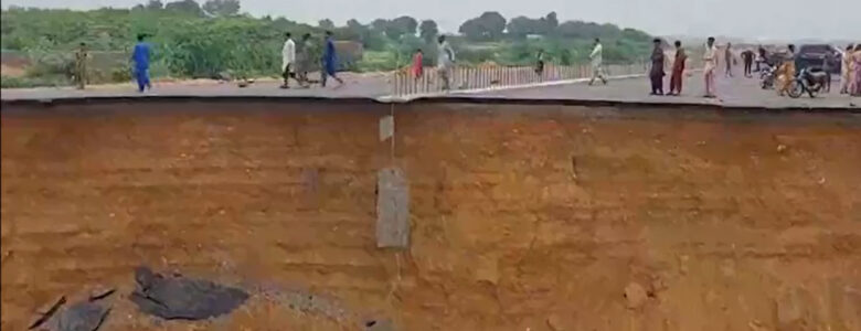 کراچی میں ہونے والی بارشوں کے نتیجے میں ملیر ندی میں پانی کا بہاؤ تیز ہونے کی وجہ سے شاہراہ بھٹو جام گوٹھ ملیر کے مقام پر سیلابی پانی میں بہہ گئی ہے، اس کے نتیجے میں سڑک پر بہت بڑا شگاف پڑگیا ہے۔