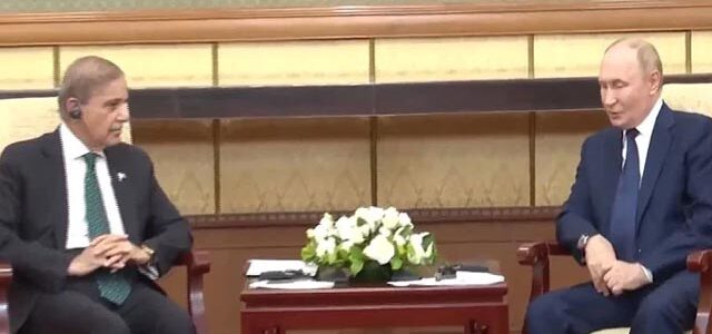 چین کے دارالحکومت بیجنگ میں وزیرِ اعظم شہباز شریف اور روسی صدر پیوٹن کے درمیان ملاقات ہوئی ہے، اس موقع پر دونوں رہنماؤں نے گرم جوشی سے مصافحہ کیا۔