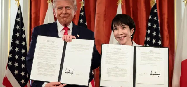 امریکی صدر ڈونلڈ ٹرمپ اور جاپان کی وزیرِاعظم سانائے تاکائچی نے ٹوکیو میں ملاقات کے دوران نایاب معدنیات، توانائی اور مصنوعی ذہانت کے شعبوں میں اشتراک کے متعدد معاہدوں پر دستخط کیے۔ دونوں رہنماؤں نے دفاعی اور اقتصادی تعاون کو وسعت دینے کے عزم کا اظہار کیا، جبکہ تاکائچی نے ٹرمپ کو نوبل امن انعام کے لیے نامزد کرنے کا اعلان کیا۔