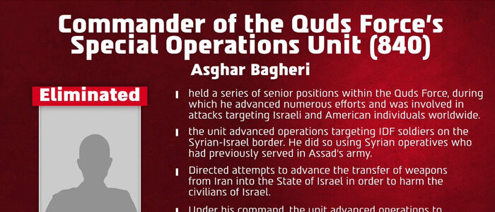 اسرائیلی فوج نے دعویٰ کیا ہے کہ اس نے تہران میں ایک فضائی حملے کے دوران ایران کی قدس فورس کے اسپیشل آپریشنز یونٹ کے کمانڈر کو ہلاک کر دیا۔