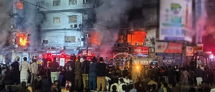 کراچی کے ایم اے جناح روڈ پر واقع گل پلازہ میں تیسرے درجے کی آگ لگنے کے نتیجے میں 6 افراد جاں بحق ہوگئے، کئی گھنٹے گزرنے کے بعد بھی آگ پر قابو نہ پایا جاسکا، آگ کی شدت سے عمارت کے کئی حصے گر گئے۔