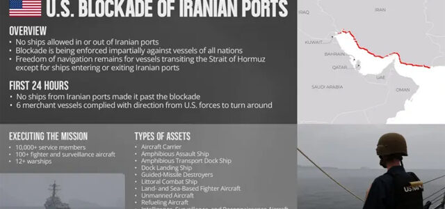 امریکی سینٹ کام کے کمانڈر ایڈمرل بریڈ کوپر کا کہنا ہے کہ ایرانی بندرگاہوں کی مکمل ناکہ بندی کر دی گئی ہے اور ’مشرق وسطیٰ میں امریکی فوج کی بحری برتری برقرار ہے۔‘